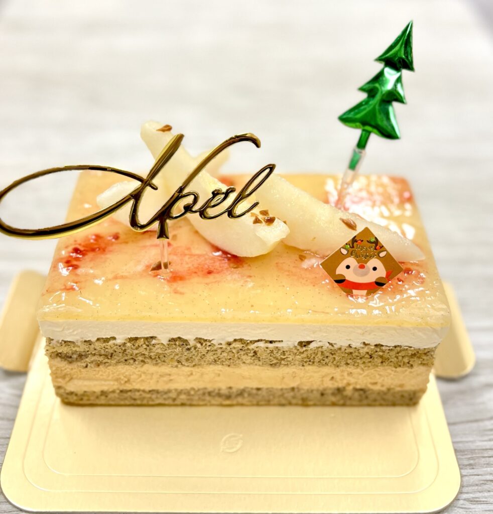洋梨のクリーム・キャラメルムース・アールグレイ(紅茶)の生地を層にしています
