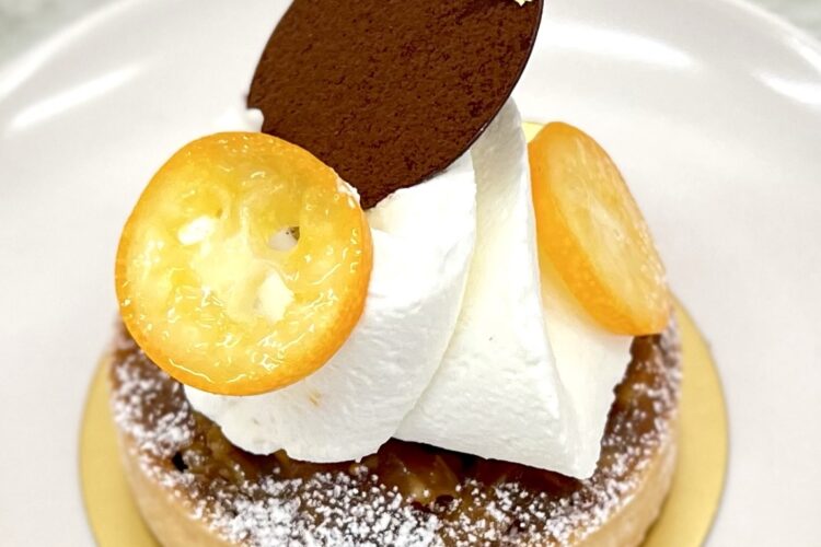 ローズマリーとオレンジの香りを移したアーモンドクリームとフレッシュの金柑をともに焼き上げたタルトにオレンジをたっぷり乗せています ※【期間限定 販売商品】